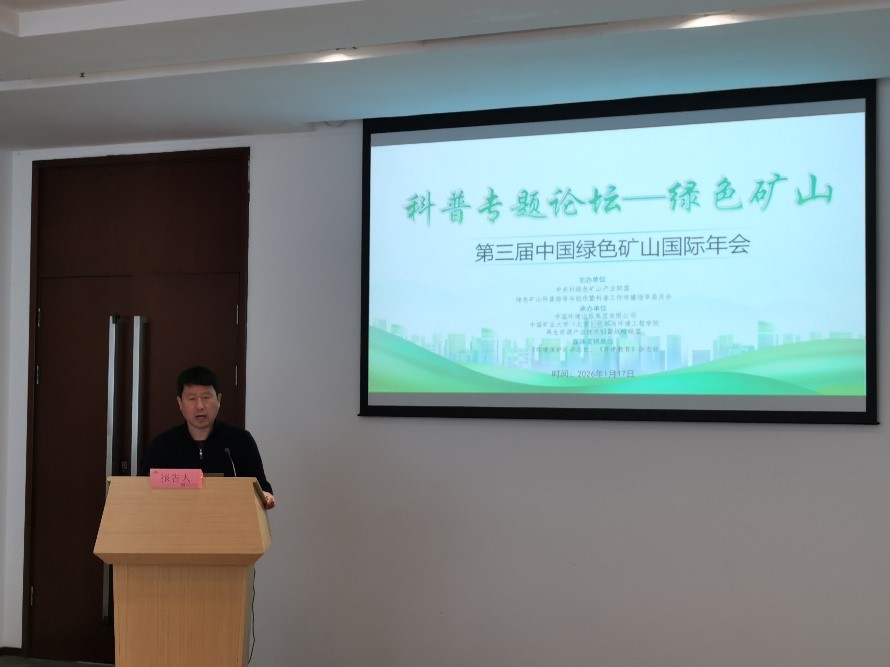 2026年1月16-18日,由中關(guān)村綠色礦山產(chǎn)業(yè)聯(lián)盟(以下簡(jiǎn)稱“中綠盟”)聯(lián)合中國(guó)恩菲工程技術(shù)有限公司主辦的第三屆中國(guó)綠色礦山國(guó)際年會(huì)在北京召開。本屆年會(huì)以“建設(shè)綠色礦山、開發(fā)綠色礦產(chǎn)、保障資源安全”為主題,匯聚國(guó)內(nèi)外礦業(yè)領(lǐng)域精英翹楚共話綠色礦業(yè)未來(lái),承載著推動(dòng)礦業(yè)邁向更清潔、更智慧、更共融未來(lái)的共同愿景。中國(guó)環(huán)境出版集團(tuán)副董事長(zhǎng)賈金虎受邀出席,并在綠色礦山科普論壇上致辭。